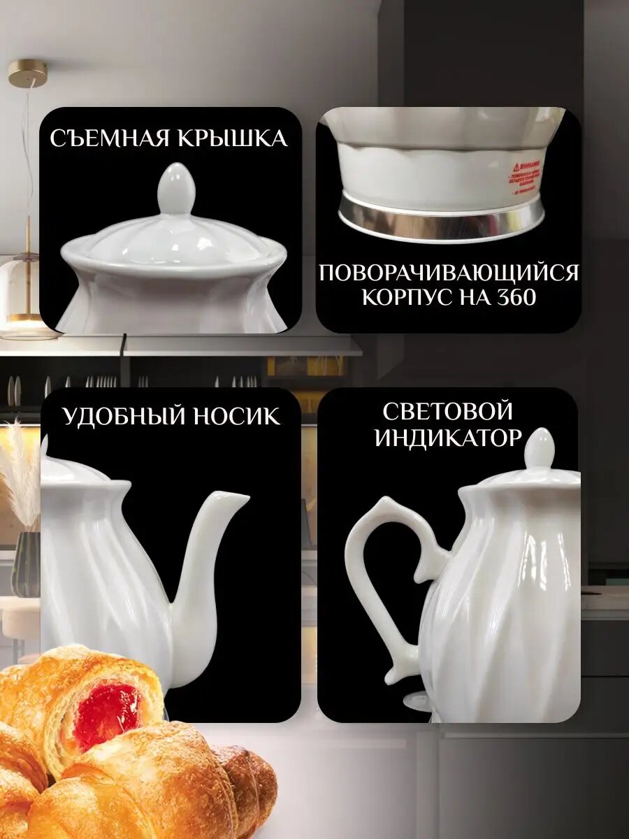 | Безопасность | блокировка включения без воды, отключение при снятии с подставки |