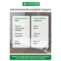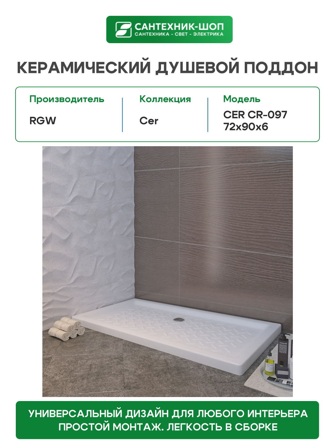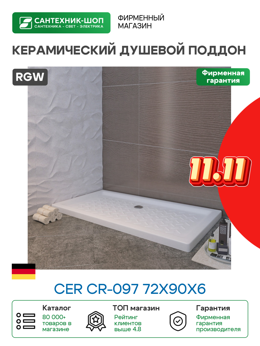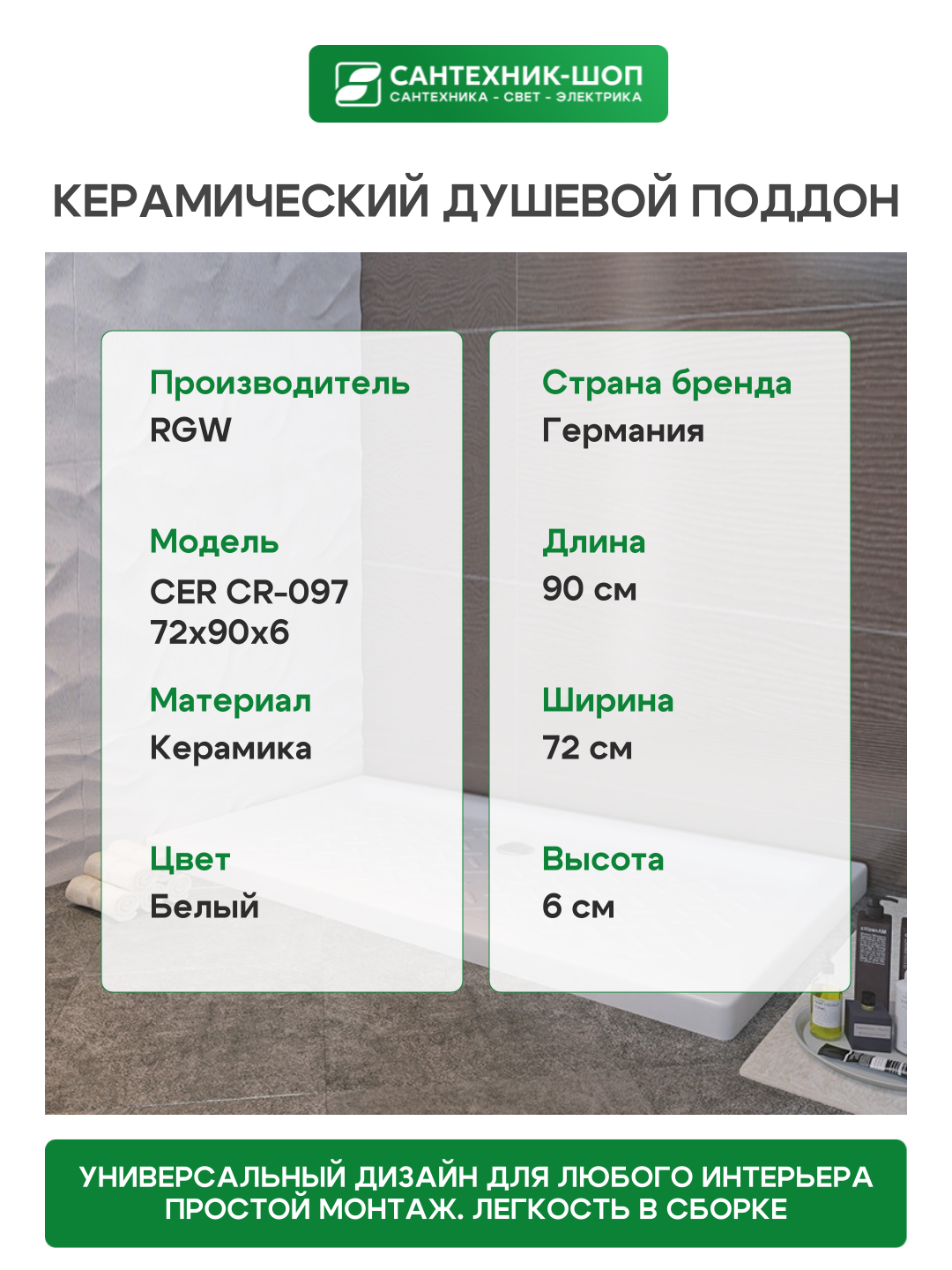 Керамический душевой поддон RGW CER CR-097 72x90x6 Белый керамика Германия: сравнение цен, характеристики, фото, актуальное наличие и цены.