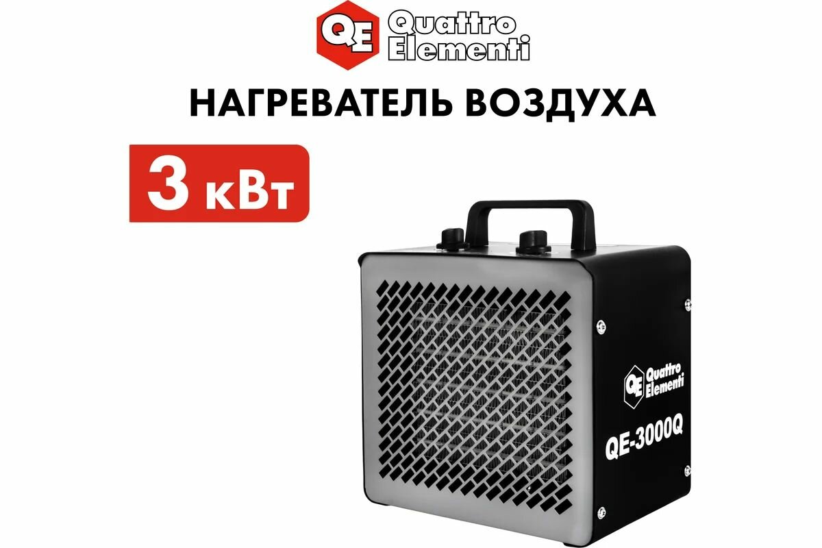 Керамический электрический нагреватель воздуха QUATTRO ELEMENTI QE-3000Q КУБ (1,5/3,0 кВт, 250 м. куб/ч, площадь обогрева 30 м2) 915-977: сравнение цен, характеристики, фото, актуальное наличие и цены.