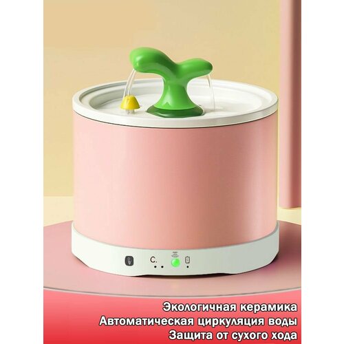 Керамический фонтан-поилка для кошек автоматическая циркуляция воды, 1.5 л, 25 дБ, Розовый