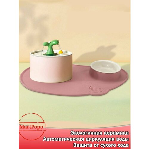Керамический фонтан-поилка для кошек автоматическая циркуляция воды, 1 л + керамическая чаша + нескользящий коврик