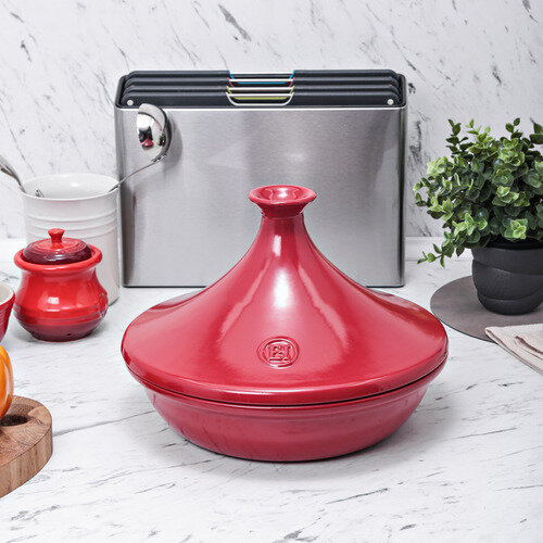 Купить Керамический тажин, 3.5 л, 32 см, красный (гранат), серия Посуда для плиты, Emile Henry, EH345632 с доставкой по всей России.