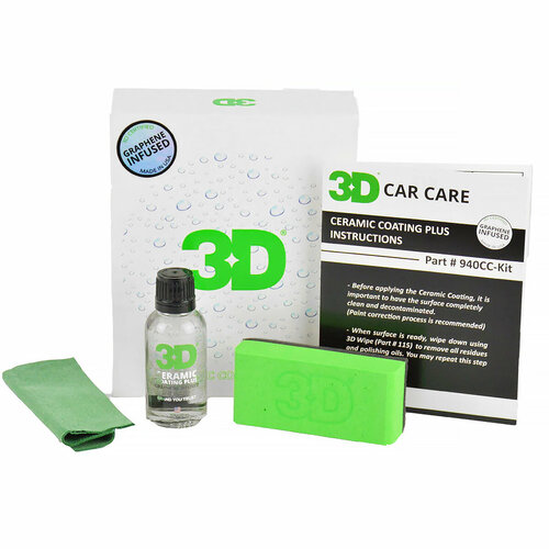 Керамическое покрытие Ceramic + Graphene от 3D Car Care - это керамическое покрытие c графеном. Простое в нанесении и располировке, создает глубину цвета, глянец и гидрофобные свойства поверхности с защитой до 2х лет. 3D Ceramic Coating Plus содержит графен и является самым прочным и стойким керамическим покрытием на сегодняшний день. Эта передовая технология обладает превосходными олеофобными и гидрофобными свойствами, которые обеспечивают более длительную защиту, блеск.