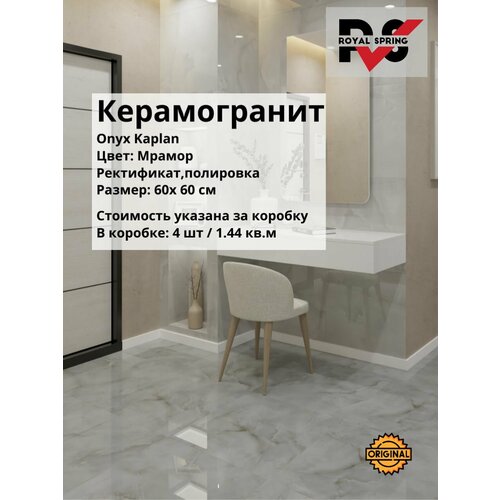 - Керамогранит Royal Spring является ректифицированным (обрезным), т. е. каждая плитка имеет одинаковый размер, что облегчает работу мастера и дает возможность укладки с минимальным швом. Такой керамогранит создает визуально практически монолитные поверхности, он эффектно смотрится и прост в уходе.