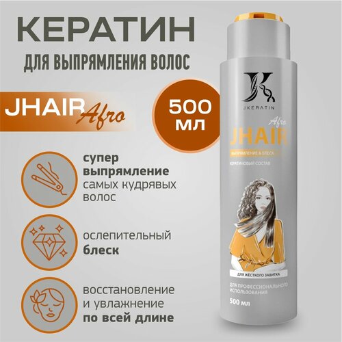 Кератин JHair Afro создан специально для максимального выпрямления жёстких кудрявых волос. Новая формула от JKeratin! Средство идеально для процедур кератиновое выпрямление, керапластика, нанопластика, пластика волос, ламинирование, ботопластика для волнистых локонов или ботокс для волос повышенной жесткости. Разглаживающий эффект от выпрямления сохраняется до полугода и имеет накопительный эффект, ухоженные прямые волосы мечты как после салонного ухода от 4 до 6 месяцев. Кератин для волос профессионально разглаживает сухие и безжизненные волосы, подойдет для натуральных, ломких, тонких, окрашенных, поврежденных, секущихся, мелированных или комбинированных волос. Благодаря усиленному, но бережному составу кератиновая система выпрямляет даже самые непослушные кудрявые волосы с жестким завитком, в том числе этнические и афрокудри. Кератиновое восстановление убирает нежелательный объем волос на 80-100%, делает локоны сильными и блестящими, насыщая их полезными ухаживающими компонентами. Гидролизованный коллаген придаёт волосам гладкость и эластичность, укрепляет их структуру, уменьшает пористость и эффективен как реконструктор. Цетиловый спирт и гидролизованный шелк делают пряди лёгкими и увлажненными, предотвращают спутывание и облегчают расчесывание. Миндальное масло за счет олеиновой кислоты и витамина F глубоко питает волосы от корней до кончиков, смягчает и стимулирует рост. Масло зародышей пшеницы восстанавливает повреждённые волосы изнутри по всей длине, дарит уход, интенсивное питание и шелковистость, возвращает лоск и здоровье. Экстракт кофе арабика защищает локоны и способствует их регенерации. Экстракт икры с помощью полинасыщенных жирных омега-3 кислот ускоряет выработку коллагена внутри волос и помогает в обновлении клеток. Кератин профессиональный уникален по эффекту укрепления, ведь содержит уходовый комплекс из 12 аминокислот без грубых химикатов. Аспарагиновая и глютаминовая кислота в дополнение к питанию и увлажнению восстанавливают белковые связи, разорванные во время процедур окрашивания и обесцвечивания. Аргинин, глицин, аланин, серин, валин, пролин, треонин, изолейцин и гистидин обладают антиоксидантным действием, работают как антистатик и убирают излишнюю пушистость, появляется защита от ломкости и УФ-излучения. После процедуры на 80-100% исчезает нежелательный объем волос, локоны становятся идеально гладкими и роскошными. Защитное покрытие, образующееся на волосках, разглаживает кутикулу. После кератинового выпрямления для волос составом JHair прическа выглядит ухоженно даже во влажную и пасмурную погоду, кудряшки перестают завиваться и пушиться. В результате послушные блестящие волосы! Уходовое средство кардинально меняет внешний вид вьющихся волос, не нарушая природную структуру, не нанося ущерб красоте прически. Легкая укладка и утяжеление концов без реакции на влажность, а также приятный шоколадно-кофейный аромат. Средство для долговременной укладки создано для профессионального использования парикмахерами и мастерами в салонах красоты и студиях. Перед началом процедуры обязательно ознакомтесь инструкцией и четко ей следуйте, все шаги и длительность выдерживания составов подробно описаны. Не рекомендуется кератиновое выпрямление волос беременным женщинам, в период лактации, 