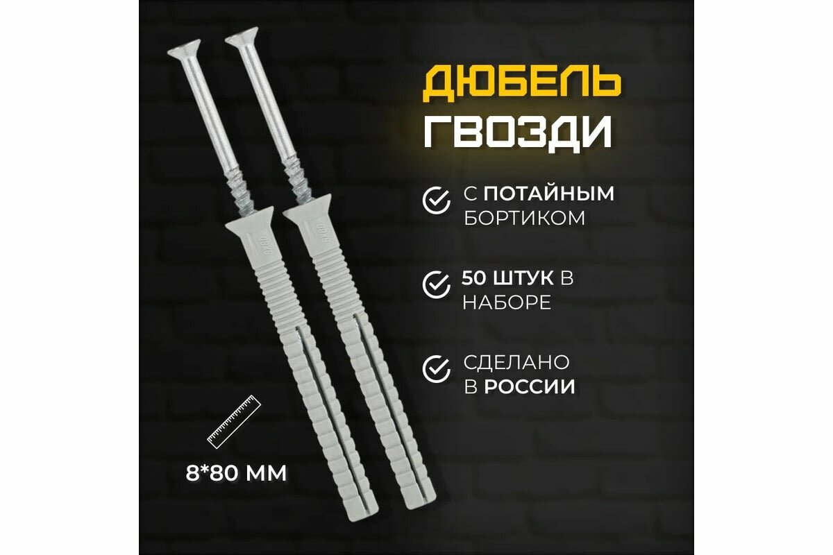 Купить КЭС Дюбель-гвоздь 8×80 мм потай 50 шт 60100005 с доставкой по всей России.