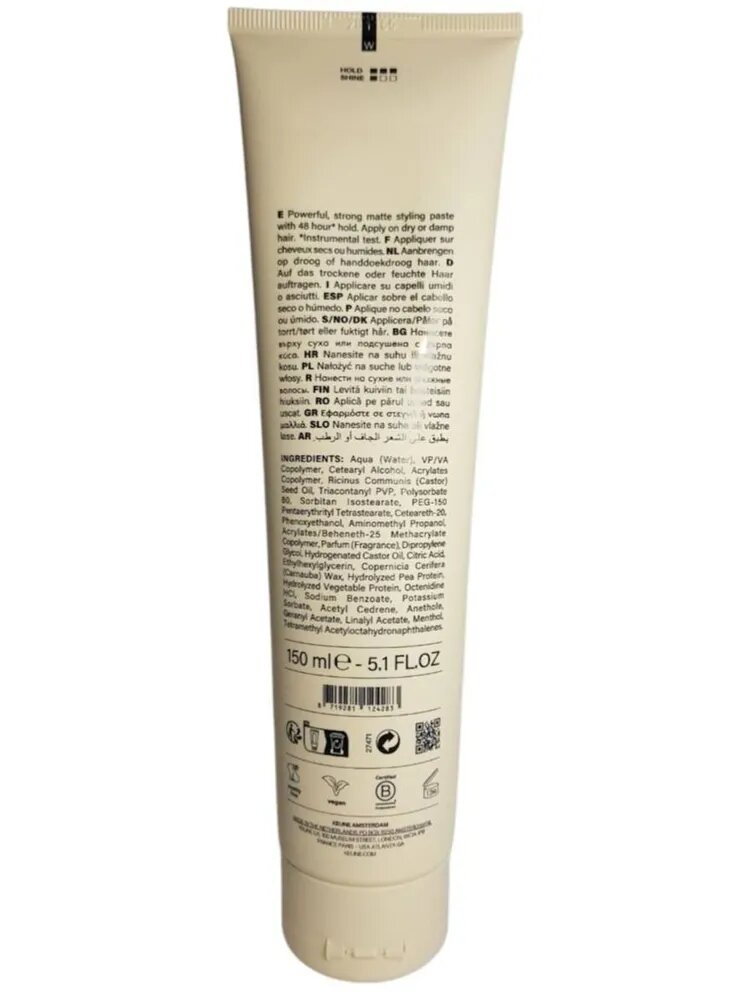 Паста для креативного стайлинга волос. Обладает сильной степенью фиксации, матирует и увлажняет. Устраняет излишнюю пушистость. Защищает от ультрафиолета и других негативных внешних факторов.