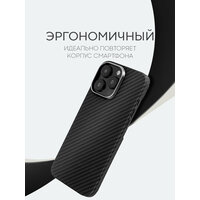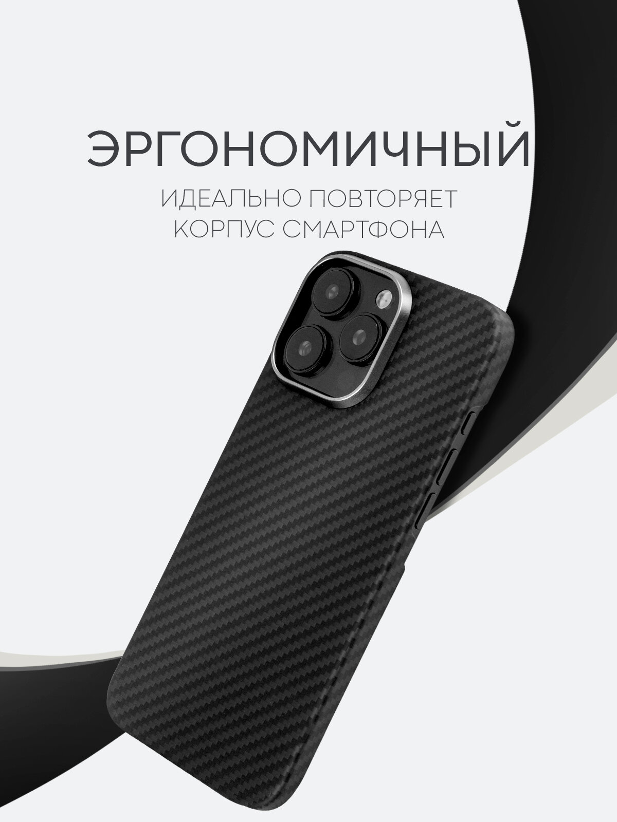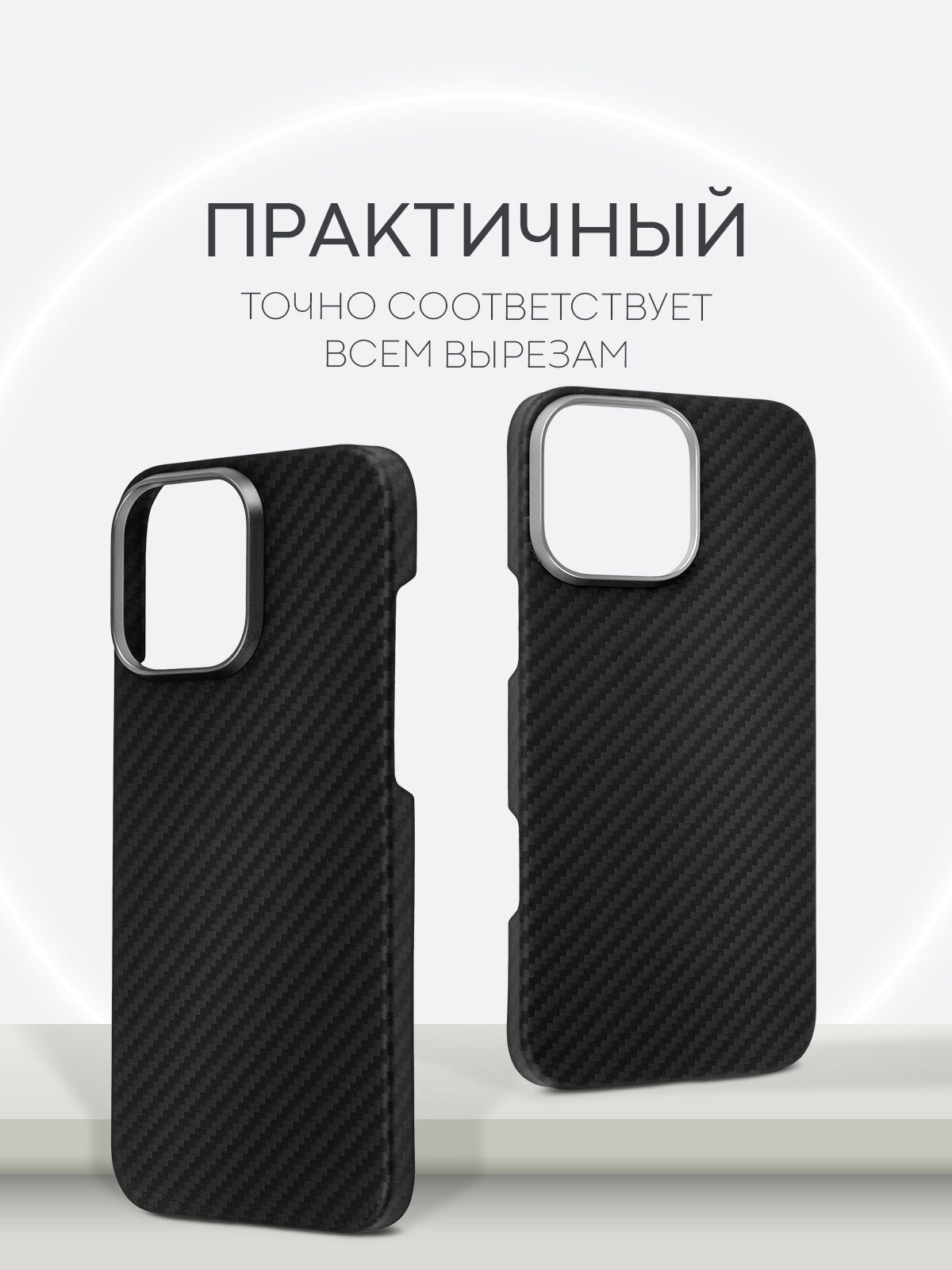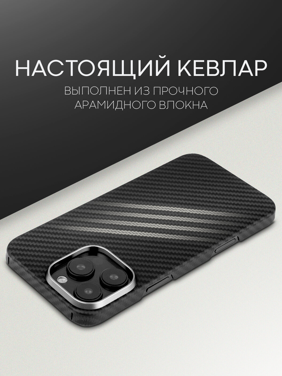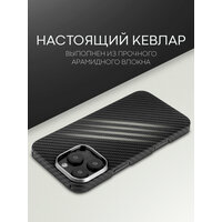 Премиум чехол KEVLAR для Apple iPhone 16 Pro Max станет надёжной защитой для вашего телефона. Он сочетает сверхпрочность, минимальную толщину – всего 0.5 мм, и легкость – 23 грамма. Эти свойства карбонового волокна позволяют применять его в автомобиле-, судостроении, а также в оборонной промышленности. Благодаря сверхтонкой конструкции карбоновый чехол не увеличивает размеры смартфона и сохраняет его оригинальный дизайн, комфортно лежит в руке и приятен тактильно. Накладка также обеспечивает люксовый внешний вид и лёгкий доступ ко всем портам и кнопкам управления устройства. Металлический бортик толщиной 1 мм достойно справится с защитой камеры, а бортики вокруг дисплея защищают его от повреждений и не препятствуют использованию защитных стекол. Кевларовый чехол имеет специальные магниты, которые идеально совместимы с беспроводной зарядкой Apple. Они обеспечивают быструю и удобную беспроводную зарядку без необходимости снимать чехол, а также позволяют использовать бампер в качестве держателя для картхолдера, крепить телефон в машине. Премиальный защитный кейс из карбона — отличный выбор для тех, кто ценит стиль, надёжность и удобство использования. Он защитит ваше устройство от царапин, ударов и других повреждений, сохраняя при этом его эстетичный внешний вид. Благодаря изготовлению точно под Айфон 16 Про Макс он плотно садится на корпус телефона и соответствует всем его особенностям, вырезам и кнопкам.