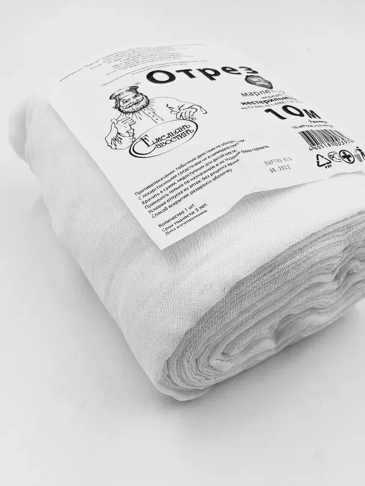 Состав: отрезы изготовлены из высококачественной отбеленной хлопчатобумажной медицинской марли (100% хлопок).