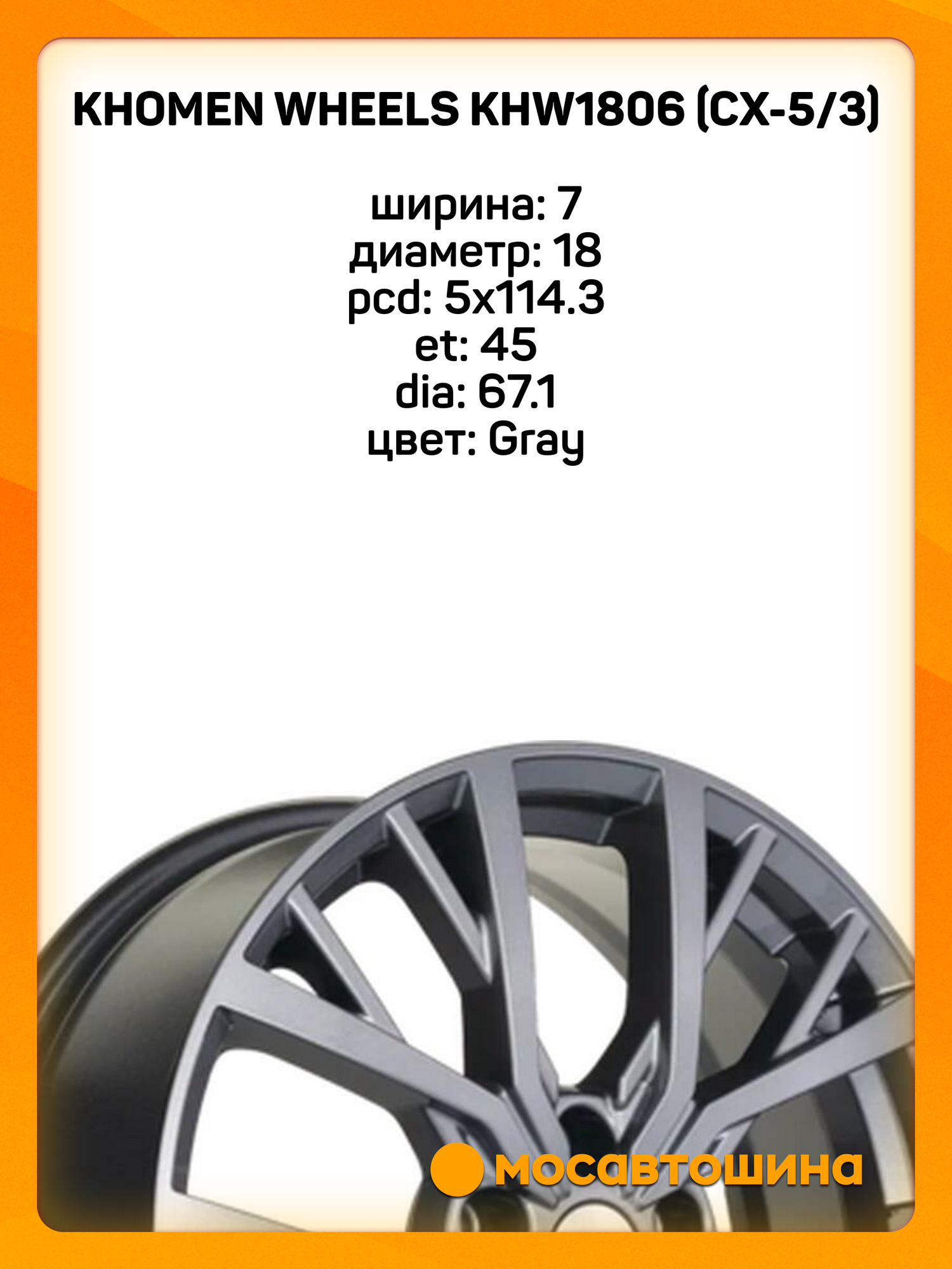 Купить Khomen Wheels KHW1806 (CX-5/3) 18×7 5×114.3 et45 dia67.1 Gray с доставкой по всей России. Khomen Wheels KHW1806 (CX-5/3) 18×7 5×114.3 et45 dia67.1 Gray: сравнение цен, характеристики, фото, актуальное наличие и цены.