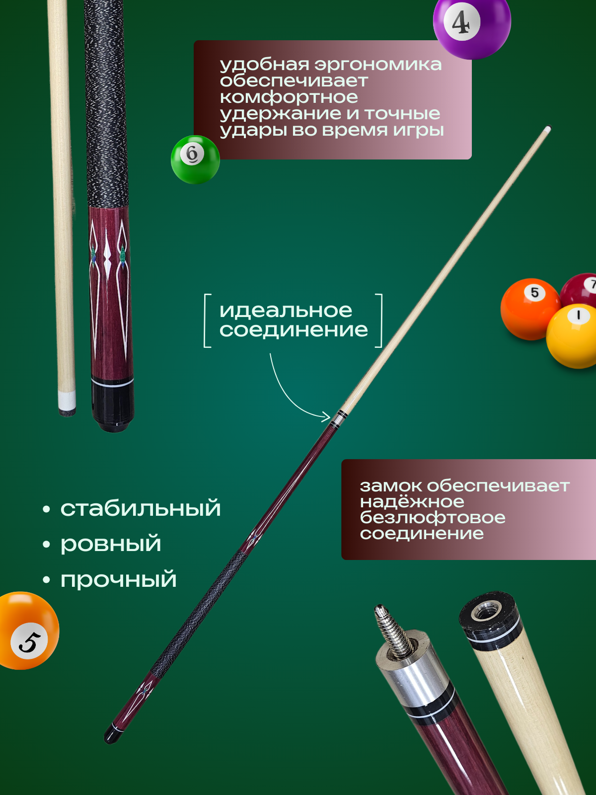 Представляем вашему вниманию качественный и универсальный кий для американского пула и русского бильярда длиной 160 см. Кий состоит из 2 деревянных частей и наконечника, инкрустированный армированной сеткой, резиновый бампер. Длина обмотки 32 см, вес 660 грамм. Этот инструмент станет отличным выбором как для начинающих игроков, так и для опытных профессионалов. Кий отличается удобной эргономикой, что обеспечивает комфортное удержание и точные удары независимо от стиля игры. Прочный и долговечный материал изготовления позволяет сохранять идеальную форму и характеристики кия на протяжении долгого времени. Кроме того, он обладает превосходной балансировкой, что способствует надежному и контролируемому удару. Благодаря универсальной длине 160 см, этот кий подходит для всех возрастных категорий и уровней подготовки.