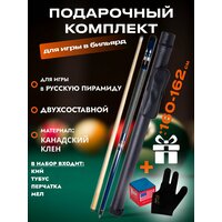 Материал: канадский клен Материал стыка: металл Материал бампера: резина Материал стакана: пластик Диаметр наклейки: 12-12,2 мм Диаметр стыка: 22 мм Длина: 160-162 см Обмотка: ирландский лен Вес кия: 750-770 г Диаметр турняка: 28 мм Высота стакана: 25 мм Длина тубуса для кия - 87 см. Материал корпуса тубуса - искусственная кожа.