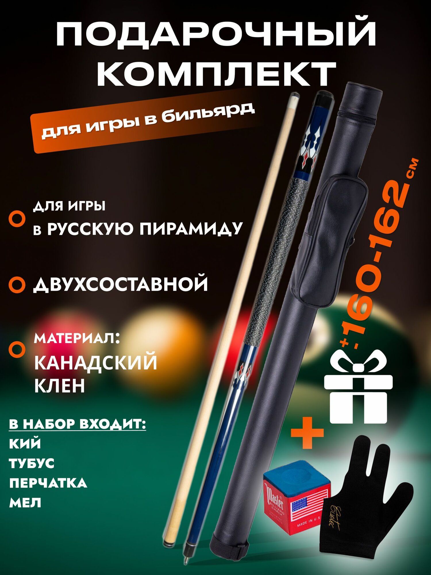 Тубус имеет отделения для одного двусоставного кия. Использование этого аксессуара для хранения и транспортировки кия, убережет кий от механических повреждений, перепадов температуры и влажности. Помимо основных отделений для турняка и шафта, сбоку имеется карман для мелких аксессуаров. Для удобства переноски тубус оснащен наплечным ремнем. Карман и клапан основных отделений закрываются на молнию. В подарок вы получите мел для кия бильярдного Triangle и перчатку .