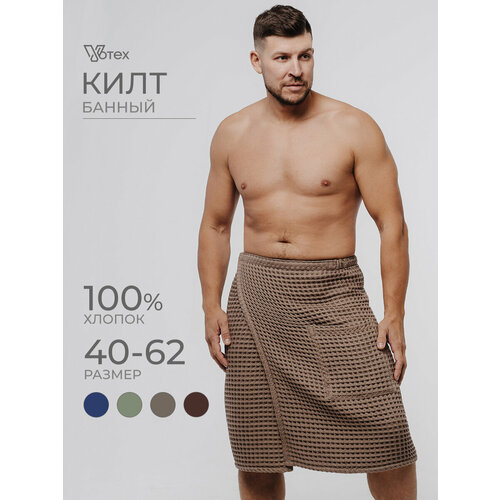 Подарок мужчине на новый год. Килт банный мужской (парео) - идеально подходит для отдыха в бане, сауне, бассейне, парной, а также для пляжа. Килт изготовлен из крупной вафельной ткани с размером ячейки 12x12 (натуральный 100% хлопок), поэтому изделие имеет отличную гигроскопичность: оно отлично впитывает влагу, быстро сохнет, является приятным на ощупь. Гипоаллергенный состав ткани не вызывает аллергию. Вафельный ткань килта позволяет коже дышать, не просвечивает, не оставляет на коже катышков, не электризуется, обладает массажным эффектом и намного приятнее к телу, чем махровая. Килт имеет универсальный размер и держится на теле за счет качественной длинной, крепкой, удобной липучки, которая позволяет индивидуально отрегулировать удобную посадку банной накидки, чтобы она подходила для любой комплекции, начиная с 40 и заканчивая 62 размером. Длина кила подойдет как для высоких, так и для невысоких мужчин. На килте имеется удобный вместительный карман. Данный аксессуар широко используются в гостиничных комплексах, банях и СПА салонах. Обширный набор цветов включает множество разнообразных универсальных оттенков: белый, синий, черный, бежевый, серый. Это позволит вписать любимое изделие в интерьер ванной комнаты любого стиля и дизайна. Мужской килт классического кроя не украшен вышивкой и рисунком. Качественное большое банное полотенце станет отличным, стильным и нужным подарком для себя, для друга, для мужчины, для парня, для папы, для сына, для мужа, для брата, для любимого на день рождения, день влюбленных, 23 февраля или другой праздник. Зимой отлично согревает, а летом охлаждает. Рекомендации по уходу за изделием: стирать при температуре не выше 30 градусов без использования отбеливателей, тогда цвет изделия останется ярким на протяжении всего срока службы, даже после многократных стирок. Вся наша одежда изготовлена в России, на Вологодском Текстильном Комбинате выполнена из высокотехнологичных тканей собственного производства и имеет необходимые сертификаты качества. Наши изделия лучше белорусских и тех, которые изготовлены в Турции, в них нет торчащих ниток, неровных строчек, некачественных швов. Чтобы увидеть весь ассортимент товаров нашего бренда, кликните на иконку магазина VOTEX.
