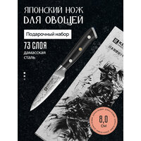 Купить Kimatsugi / Японский кухонный нож для овощей Damascus в подарочном наборе. Настоящая дамасская сталь 73 слоя. VG-10 в обкладках. Длина лезвия 8 см с доставкой по всей России.