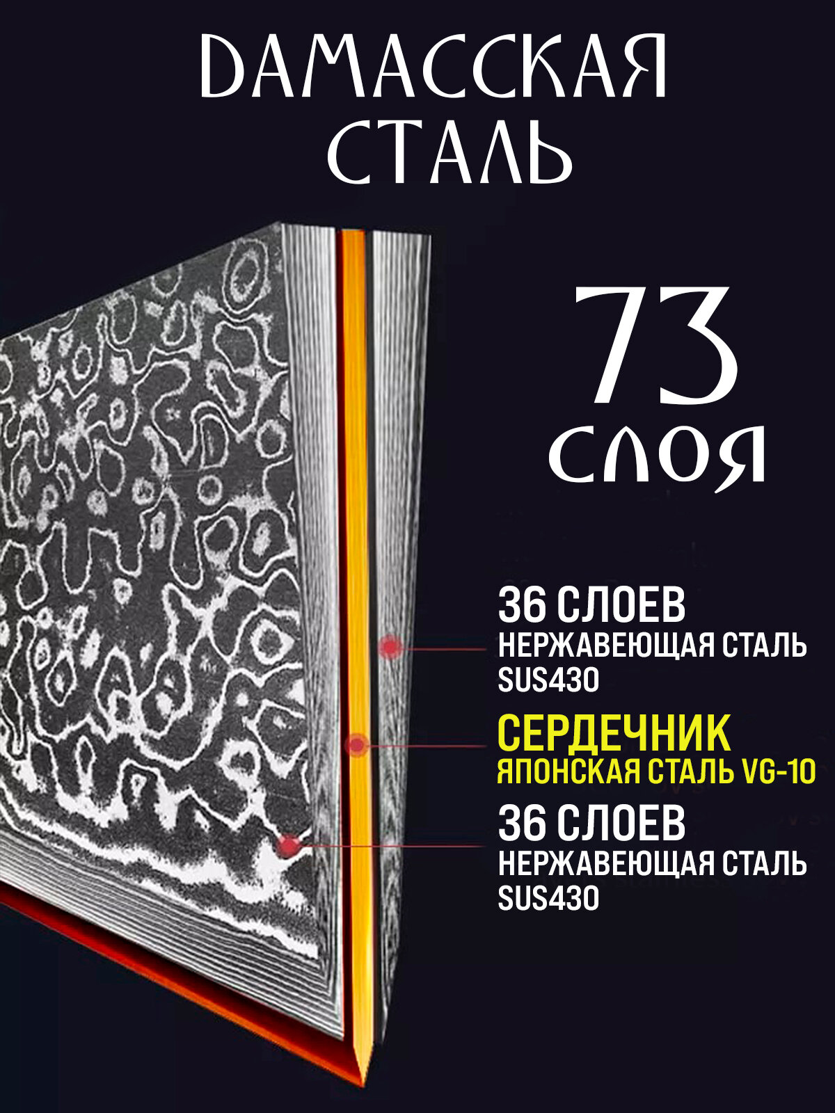Kimatsugi / Японский кухонный нож для овощей Damascus в подарочном наборе. Настоящая дамасская сталь 73 слоя. VG-10 в обкладках. Длина лезвия 8 см: сравнение цен, характеристики, фото, актуальное наличие и цены.
