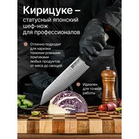 Kimatsugi / Японский кухонный нож Кирицуке Damascus #141. Настоящая дамасская сталь 73 слоя. VG-10 в обкладках. Длина лезвия 20 см. В подарочной коробке