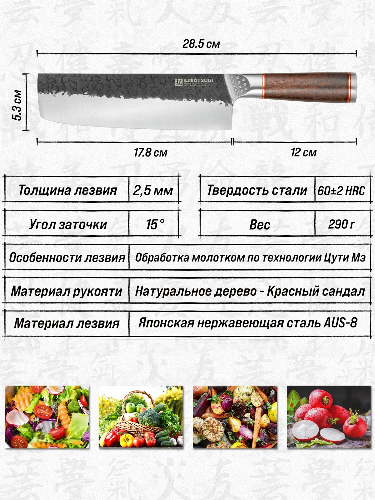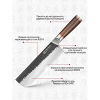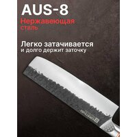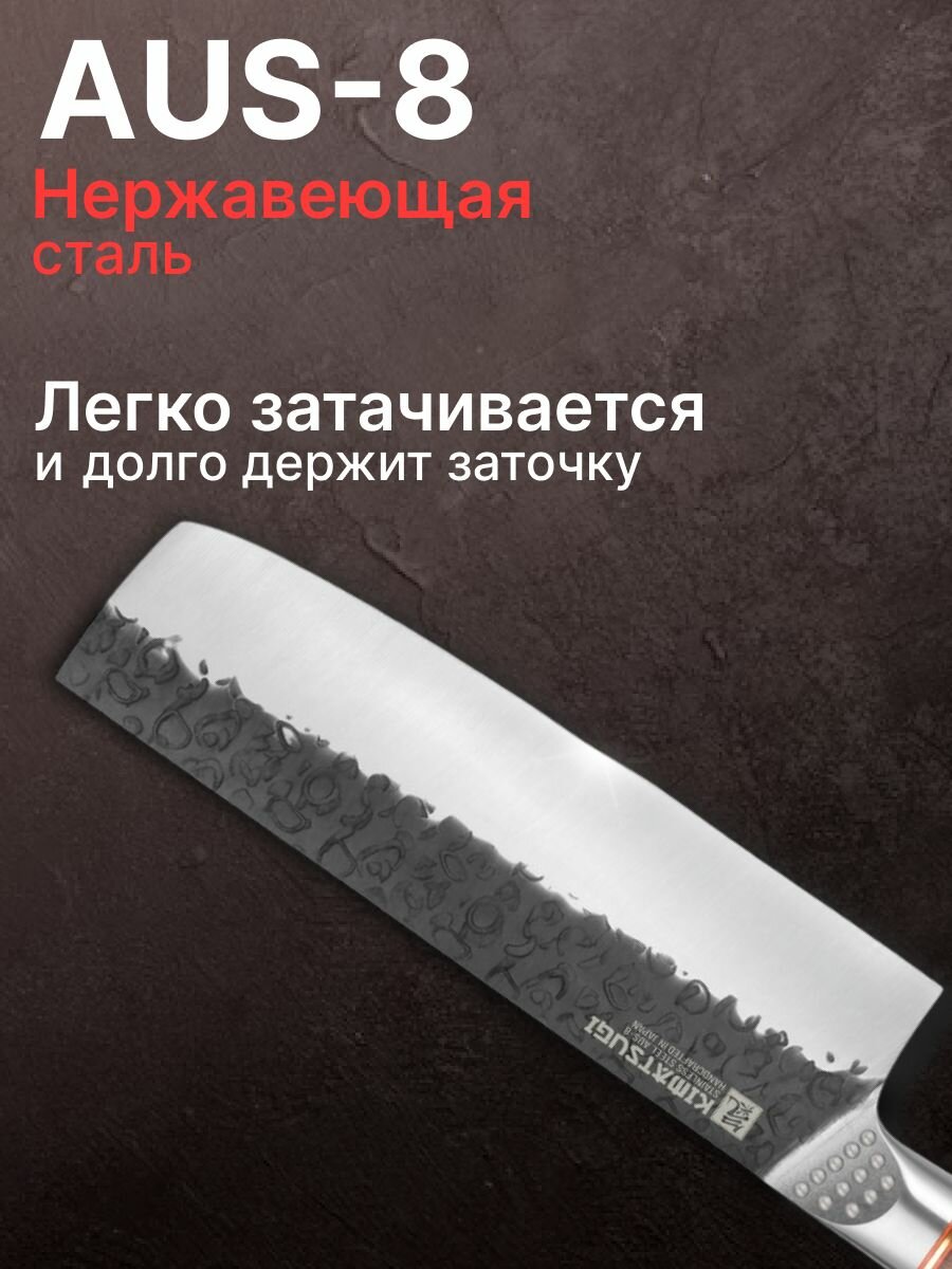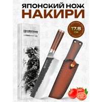 Kimatsugi / Японский кухонный нож Накири PRO. Нержавеющая сталь AUS-8. Длина лезвия 17,8 см. Кожаные ножны в комплекте. В подарочной коробке: сравнение цен, характеристики, фото, актуальное наличие и цены.