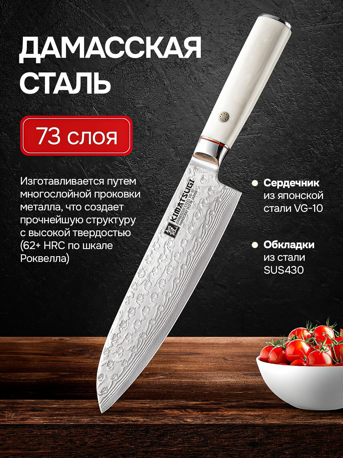 Купить Kimatsugi / Японский кухонный нож Сантоку Damascus #141. Настоящая дамасская сталь 73 слоя. VG-10 в обкладках. Длина лезвия 18 см. В подарочной коробке с доставкой по всей России. Kimatsugi / Японский кухонный нож Сантоку Damascus #141. Настоящая дамасская сталь 73 слоя. VG-10 в обкладках. Длина лезвия 18 см. В подарочной коробке: сравнение цен, характеристики, фото, актуальное наличие и цены.
