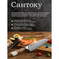 Kimatsugi / Японский кухонный нож Сантоку Damascus #143. Настоящая дамасская сталь 67 слоев. VG-10 в обкладках. Длина лезвия 17.3 см. В подарочной коробке