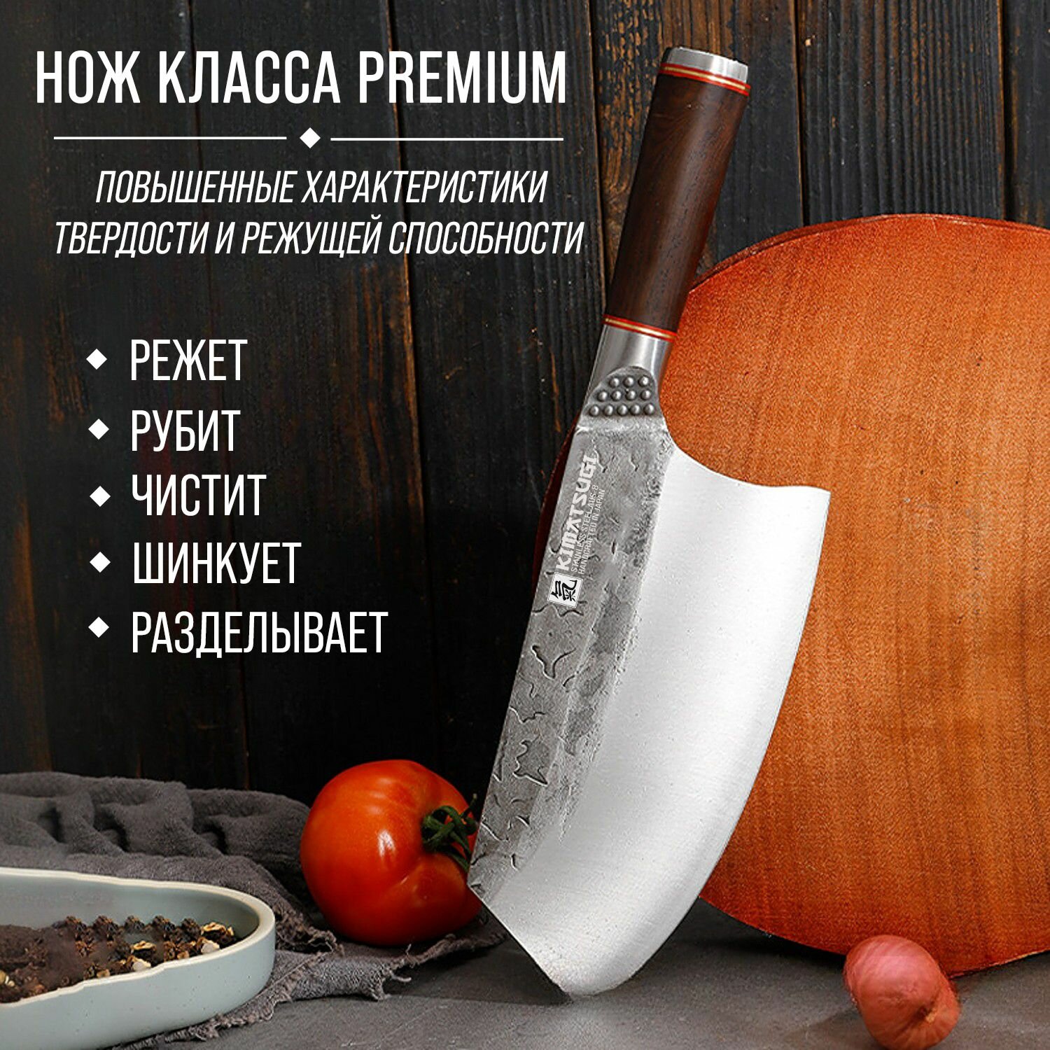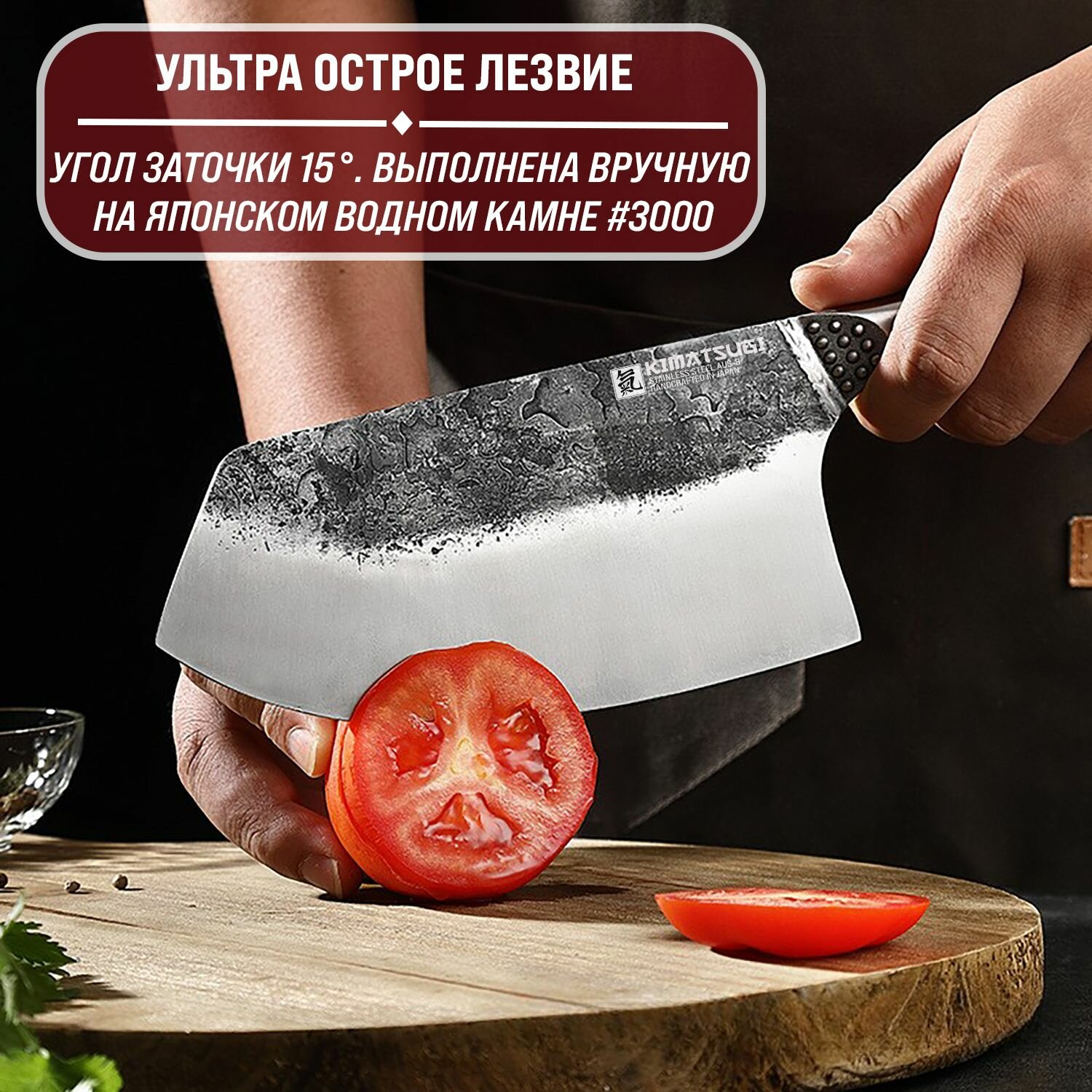 Kimatsugi / Японский кухонный нож-топорик / Нержавеющая сталь AUS-8 / Длина лезвия 17.5 см / Кожаные ножны в комплекте: сравнение цен, характеристики, фото, актуальное наличие и цены.