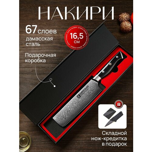 Kimatsugi / Японский кухонный поварской нож Накири Damascus #128 в подарочной коробке. Настоящая дамасская сталь 67 слоев. VG-10 в обкладках. Длина лезвия 16,5 см. Подарок внутри!: сравнение цен, характеристики, фото, актуальное наличие и цены.