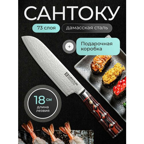 Кухонный нож Сантоку от японского производителя Kimatsugi (серия Damascus #133) подходит для Тонкой нарезки овощей, фруктов и зелени, шинковки, нарезки мяса и рыбы. Идеален для домашней кухни, особенно если нужен удобный и компактный нож для разнообразных задач.