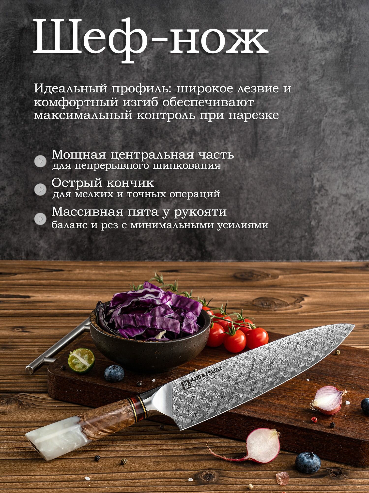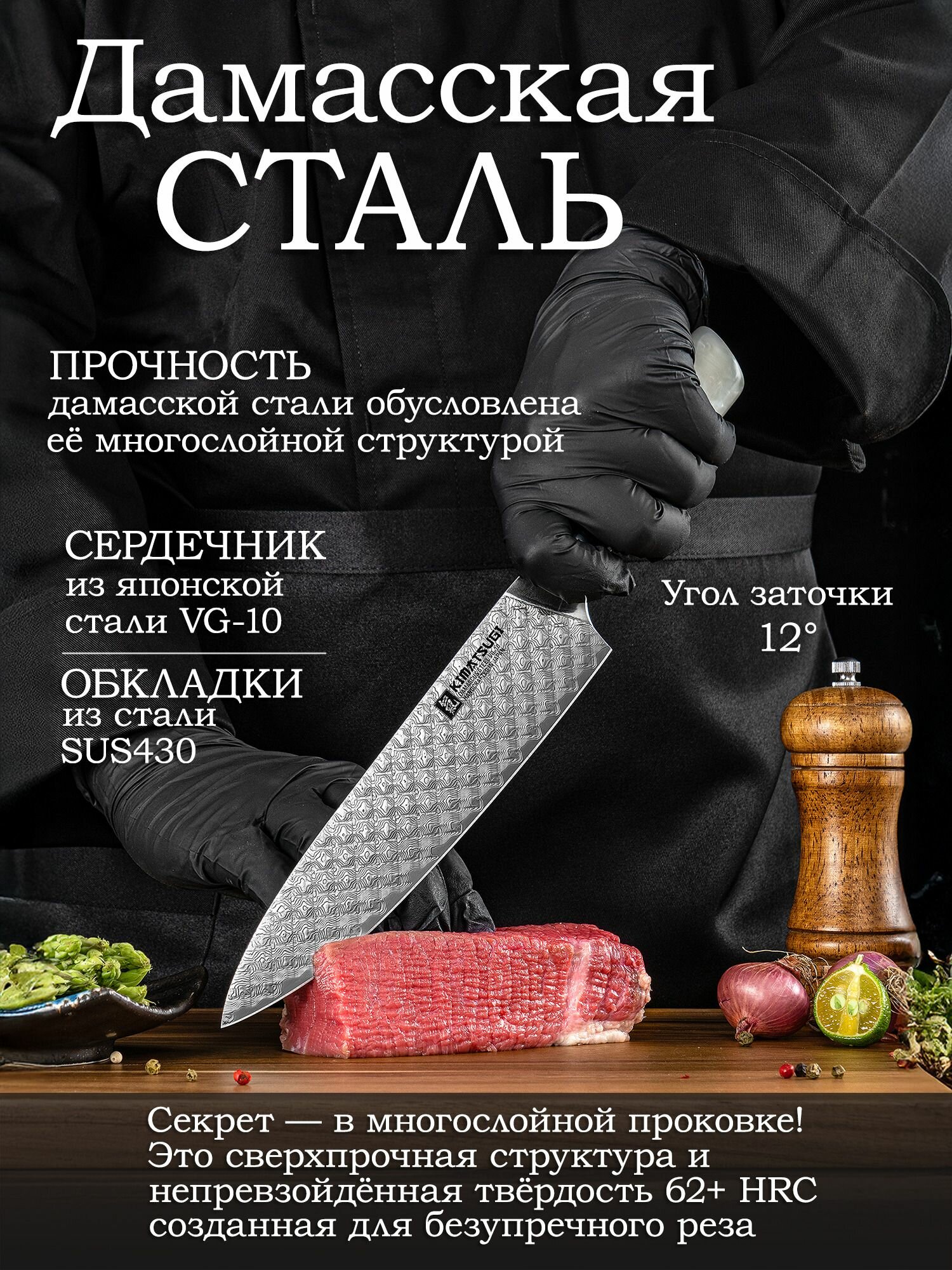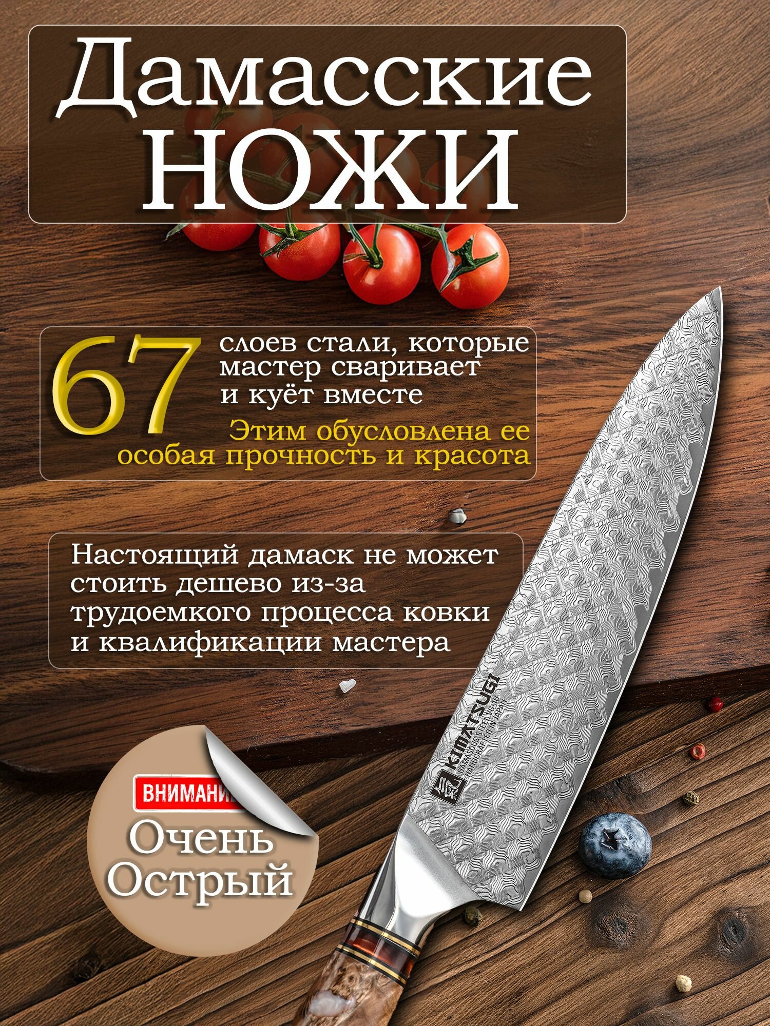 Купить Kimatsugi / Японский кухонный Шеф-нож Damascus #143. Настоящая дамасская сталь 67 слоев. VG-10 в обкладках. Длина лезвия 20,8 см. В подарочной коробке с доставкой по всей России. Kimatsugi / Японский кухонный Шеф-нож Damascus #143. Настоящая дамасская сталь 67 слоев. VG-10 в обкладках. Длина лезвия 20,8 см. В подарочной коробке: сравнение цен, характеристики, фото, актуальное наличие и цены.