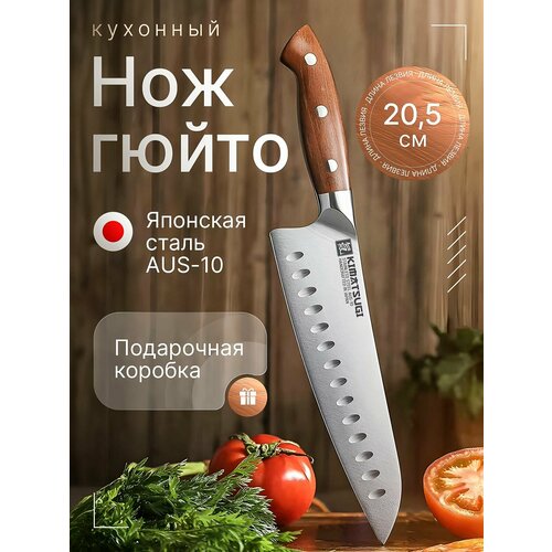 Купить Kimatsugi / Японский поварской кухонный нож Гюйто в подарочной коробке. Модель #139. Нержавеющая сталь AUS-10. Длина лезвия 20,5 см. с доставкой по всей России.