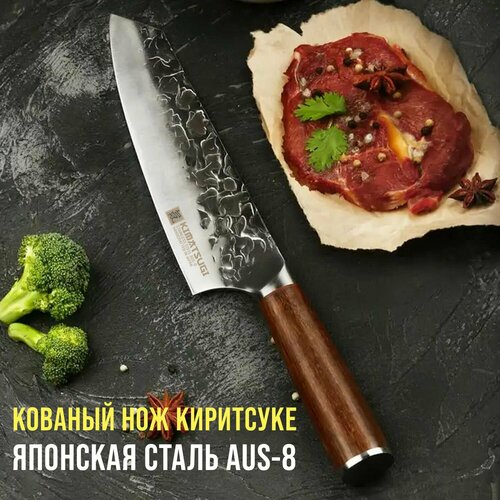 ✅ Японский кованый нож для кухни Kimatsugi Totori создан из легендарной стали AUS-8, закаленной до твердости 58 HRC, отличающейся своей прочностью и непревзойдёнными режущими качествами.