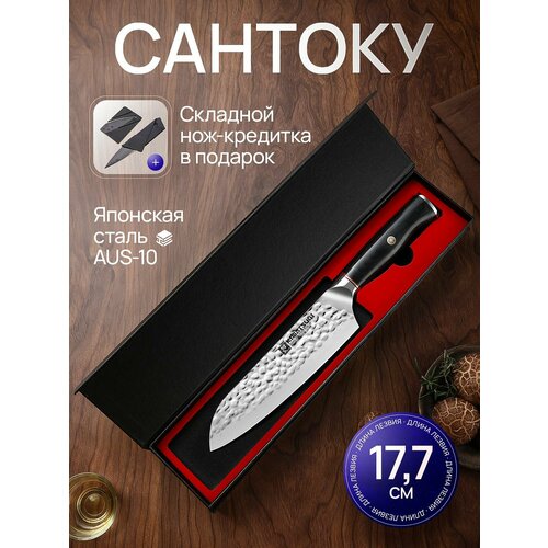 Kimatsugi / Японский поварской кухонный нож Сантоку в подарочной коробке. Модель #129. Нержавеющая сталь AUS-10. Длина лезвия 177 мм. Подарок внутри: сравнение цен, характеристики, фото, актуальное наличие и цены.