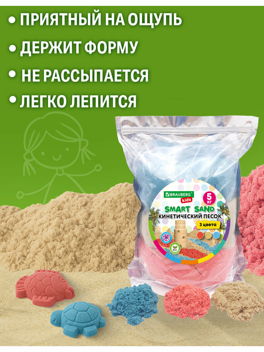 Кинетический песок для детей и малышей цветной, набор для лепки 5000 г, 3 цвета, пакет, Brauberg Kids, 666007: сравнение цен, характеристики, фото, актуальное наличие и цены.