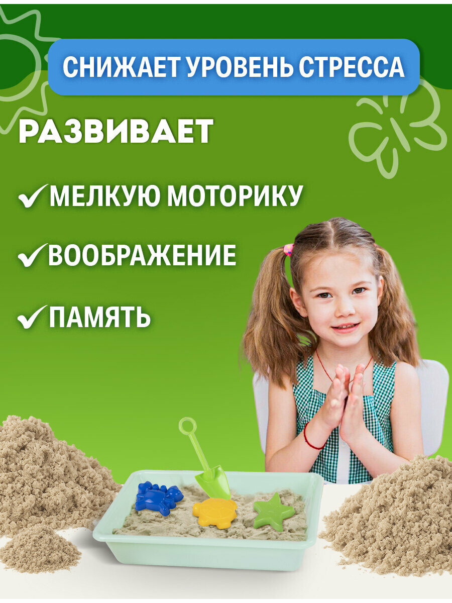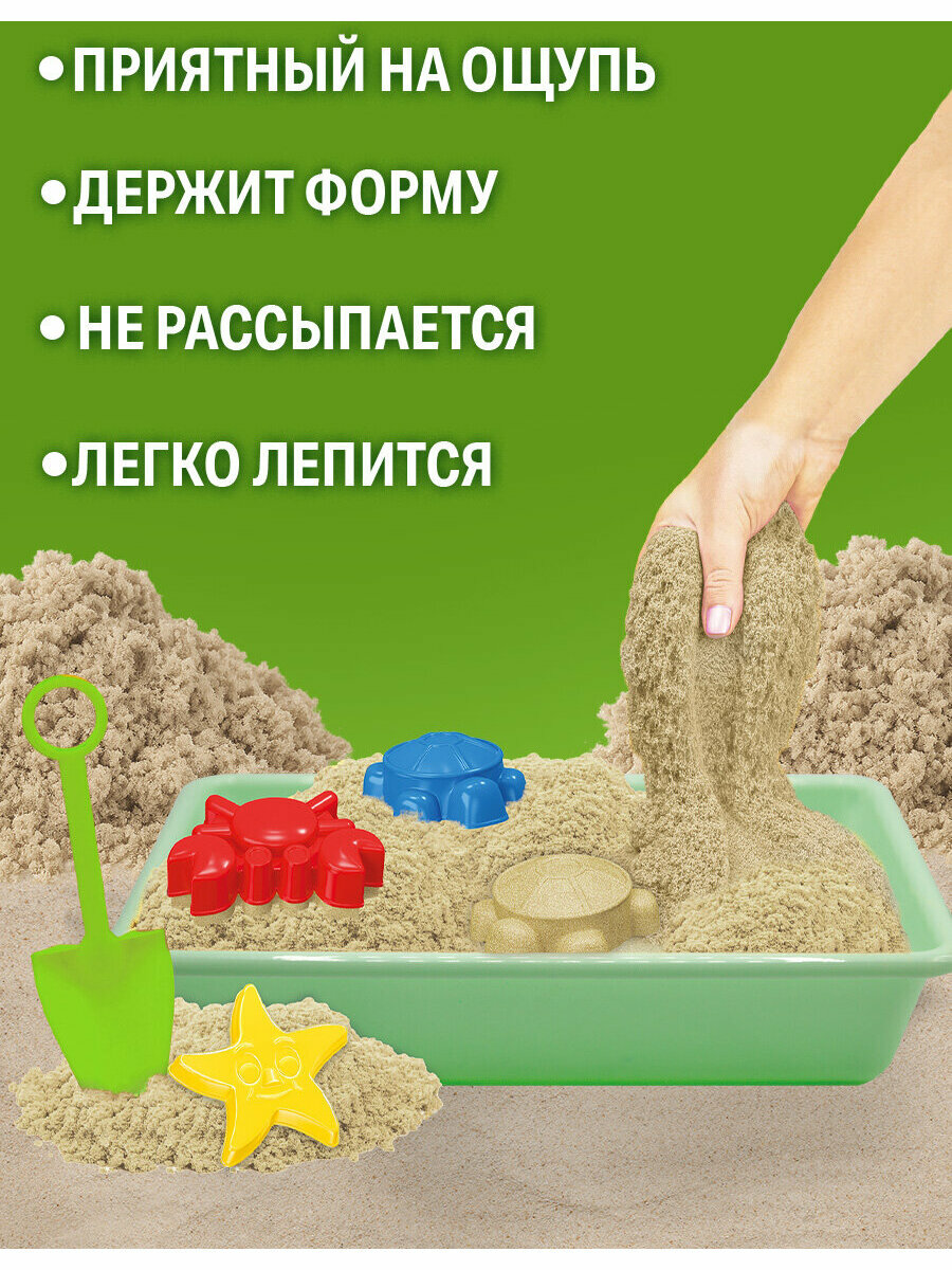 Безопасный кинетический умный песок BRAUBERG KIDS не отличим от влажного морского песка, но в руках творца он приобретает удивительно пластичные свойства, которых лишен обычный песок.