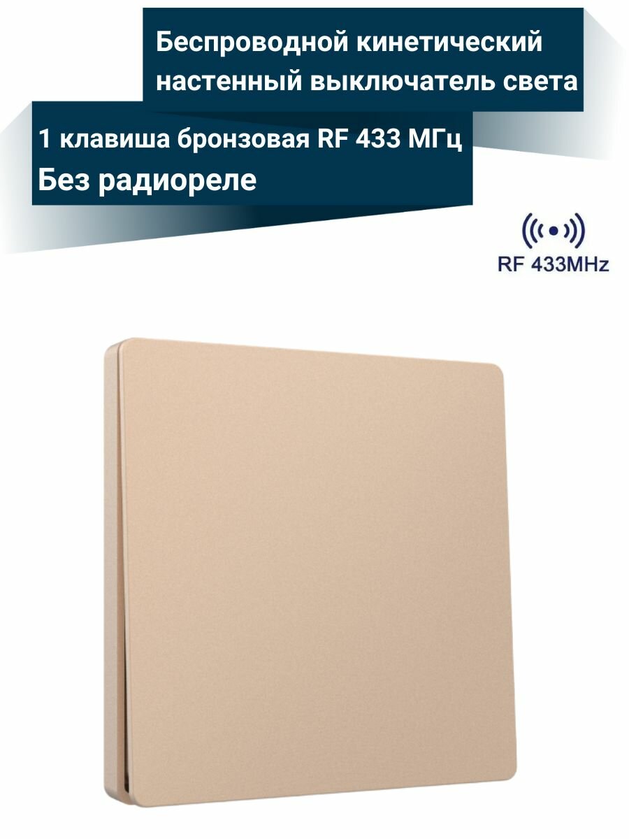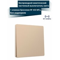 Одноклавишный выключатель без батарейки RF 433Mhz кинетический пъезо бронзовый, предназначен для управления беспроводным способом (радиоканал) освещением, приводами жалюзи или ворот и иными электрическими приборами.