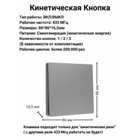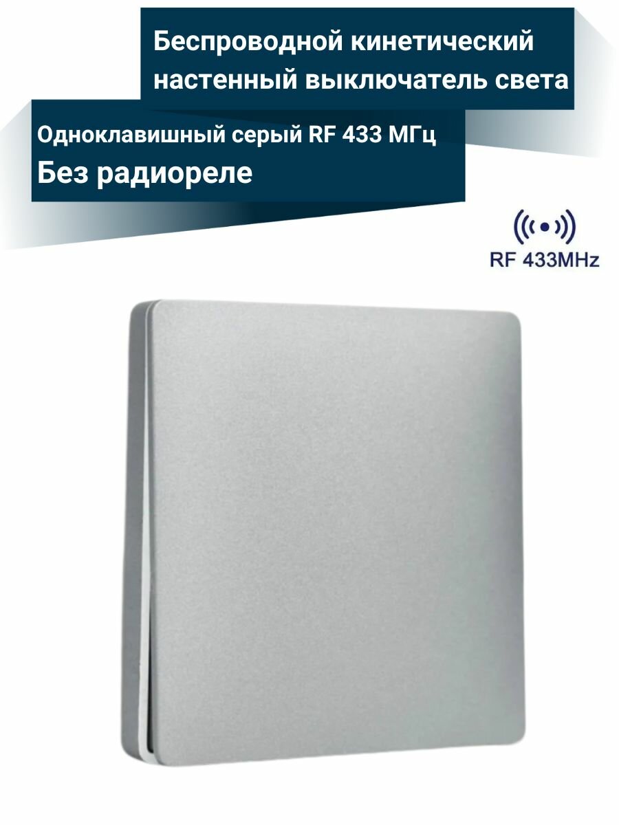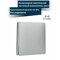 Беспроводной кинетический выключатель серый пульт для радиореле RF 433МГц предназначен для установки без рамки. Не требует установки подрозетника на месте монтажа. Закрепите выключатель на стене с помощью двустороннего скотча входящего в комплект поставки или саморезов.