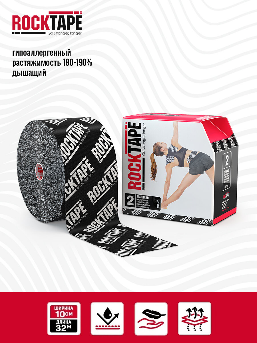 Купить Кинезиотейп Rocktape Standart «2», 10 см х 32 м, черный лого с доставкой по всей России. Кинезиотейп Rocktape Standart «2», 10 см х 32 м, черный лого: сравнение цен, характеристики, фото, актуальное наличие и цены.