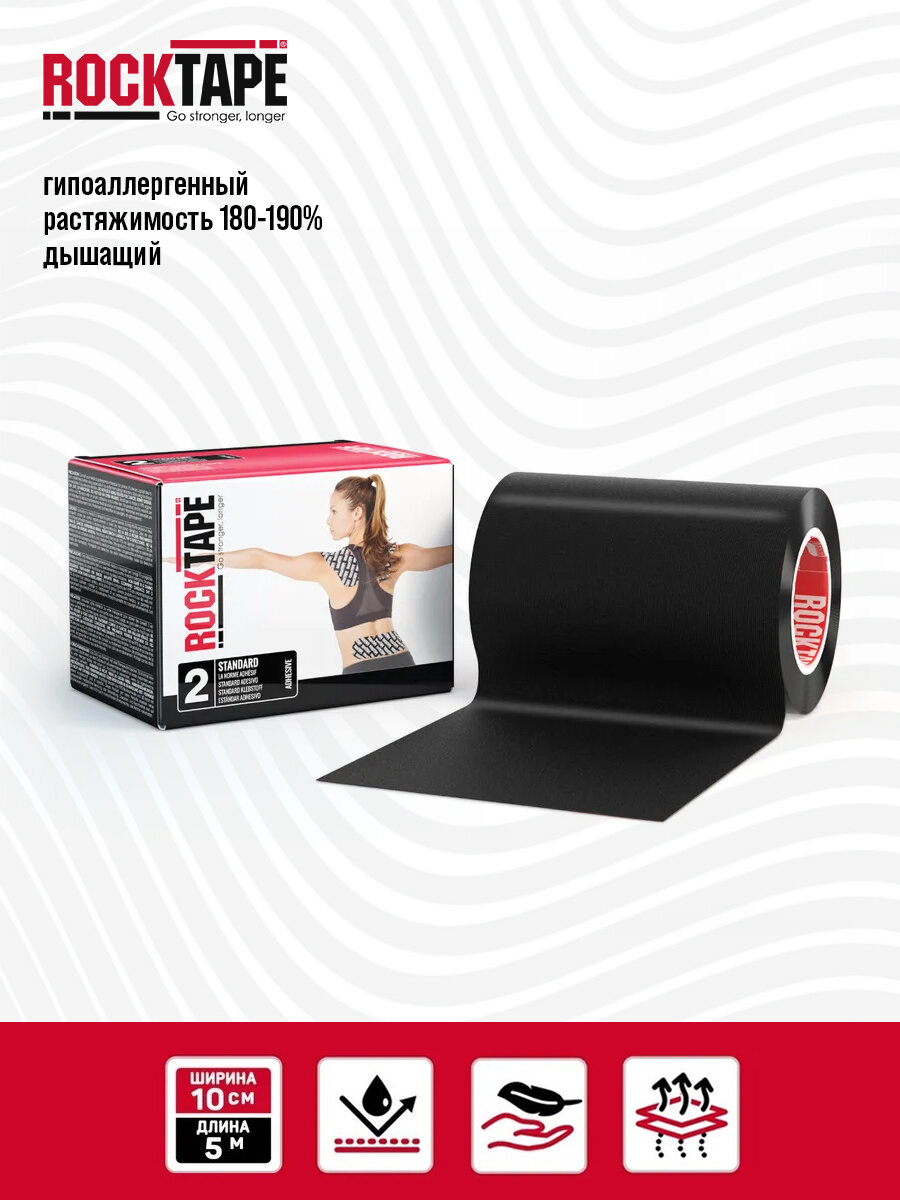 Купить Кинезиотейп Rocktape Standart «2» широкий, размер 10 см х 5 м, черный с доставкой по всей России. Кинезиотейп Rocktape Standart «2» широкий, размер 10 см х 5 м, черный: сравнение цен, характеристики, фото, актуальное наличие и цены.