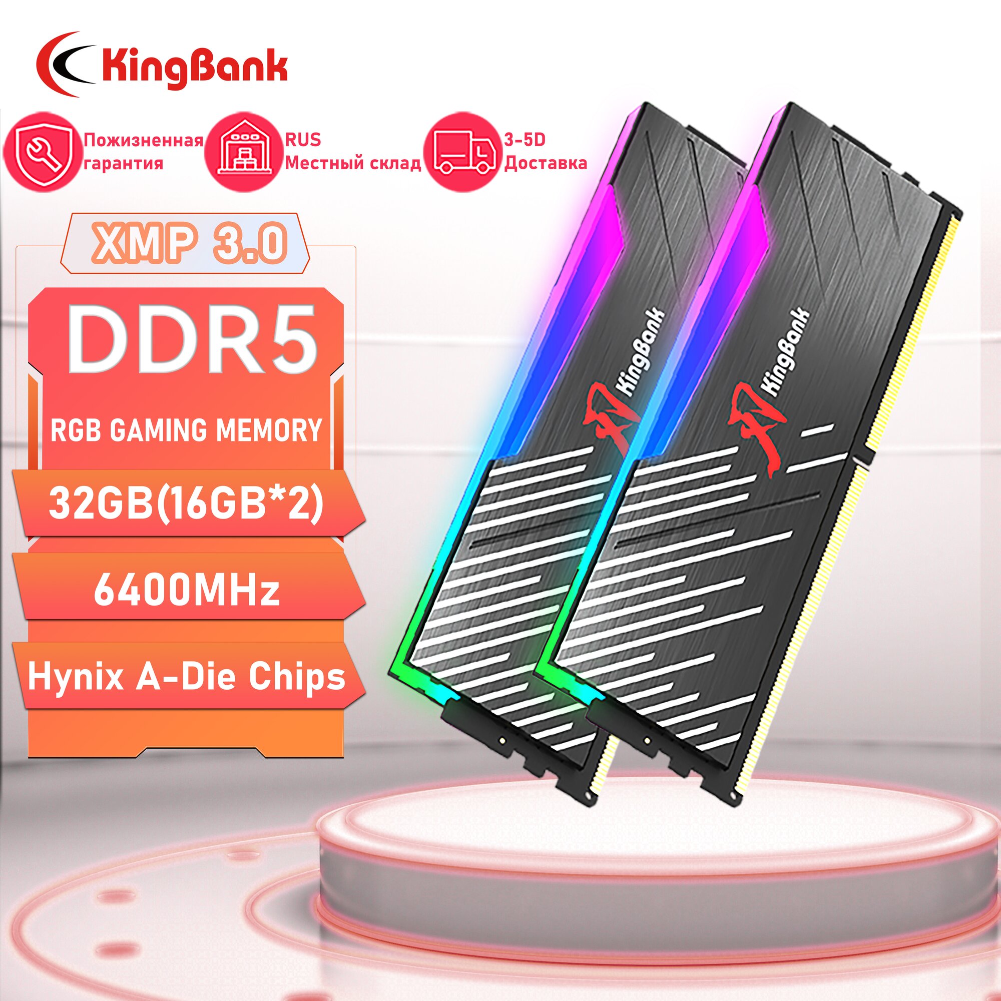 Kingbank Модуль памяти DDR5 6400MHz 2*16GB 32GB UDIMM Dark Heatsink RGB DRAM (Hynix A-die C32): сравнение цен, характеристики, фото, актуальное наличие и цены.