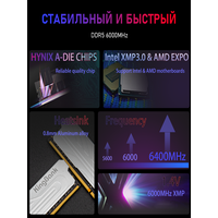 Рабочая частота 6400 МГц позволяет устройству справляться с нагруженными приложениями и играми, обеспечивая плавную работу даже в самых требовательных ситуациях. Этот модуль памяти идеально подходит для геймеров, дизайнеров и любых пользователей, которым требуется высокая производительность. В дополнение к этому, поддержка технологии Hynix M-die C32 гарантирует стабильную работу и надежность в течение длительного времени.