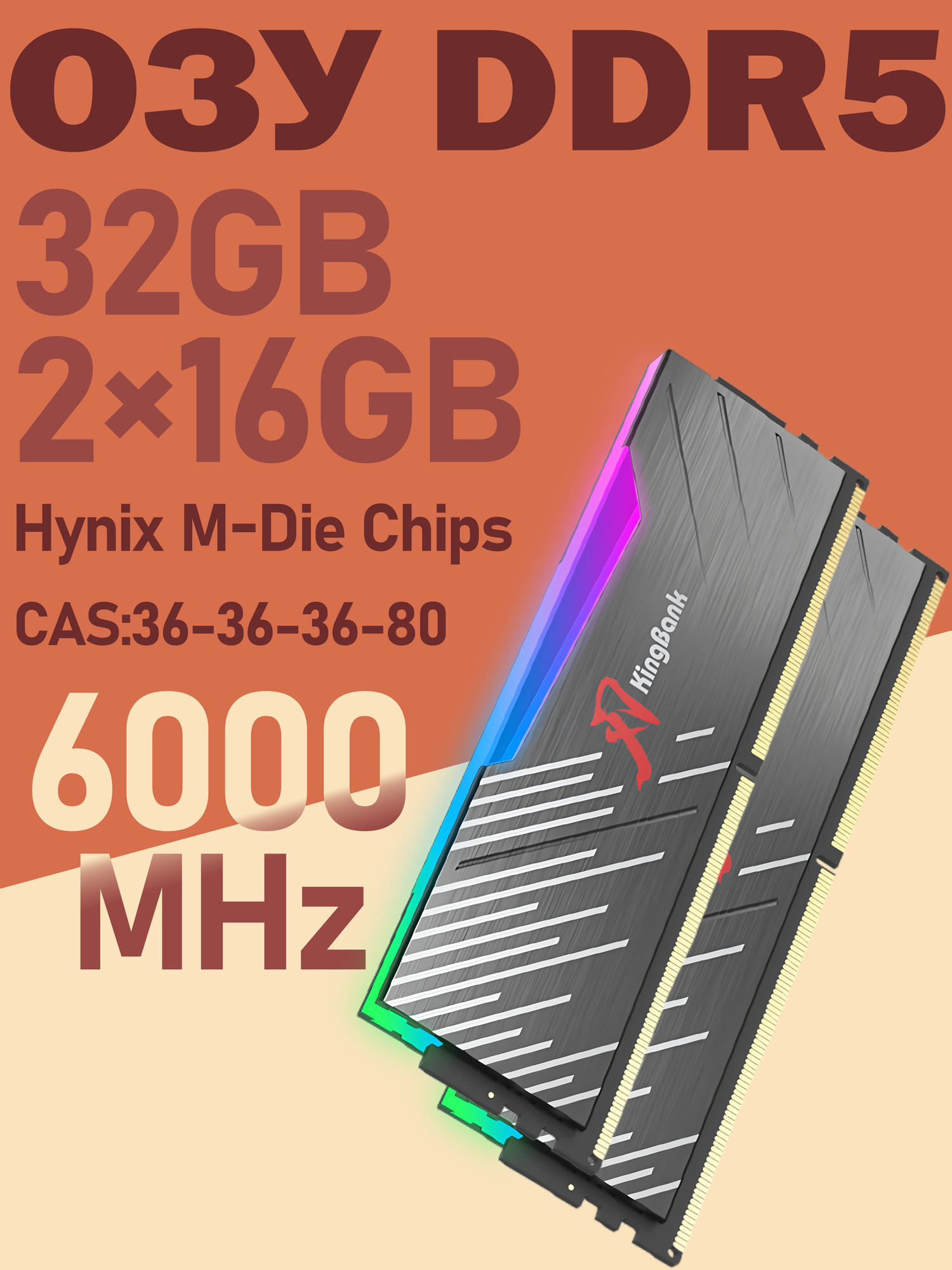 Kingbank Оперативная память Dark Soarblade RGB DDR5 UDIMM 6000MHz 2*16GB Drak Heatsink (Hynix M-die C36): сравнение цен, характеристики, фото, актуальное наличие и цены.