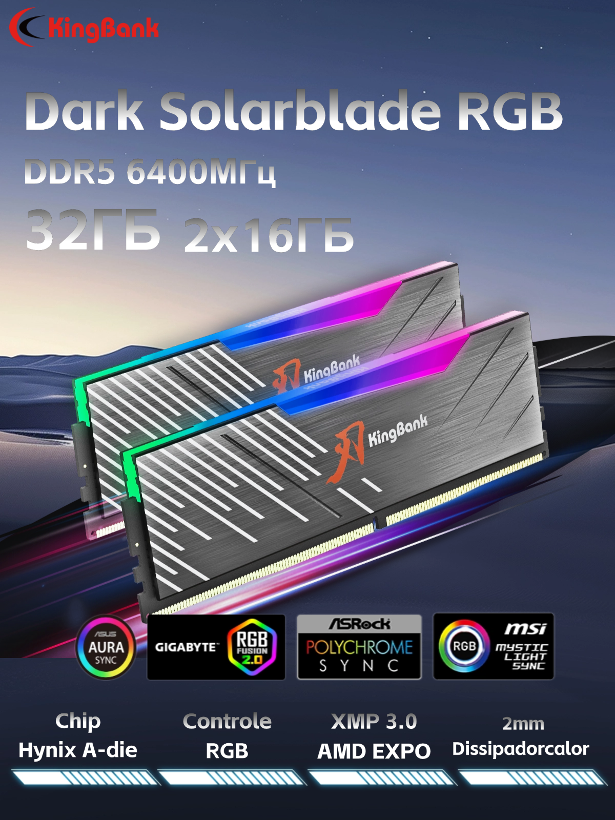 KingBank Оперативная память Dark Soarblade RGB DDR5 UDIMM 6400MHz 2*16ГБ Drak Heatsink(Hynix A-die C32): сравнение цен, характеристики, фото, актуальное наличие и цены.