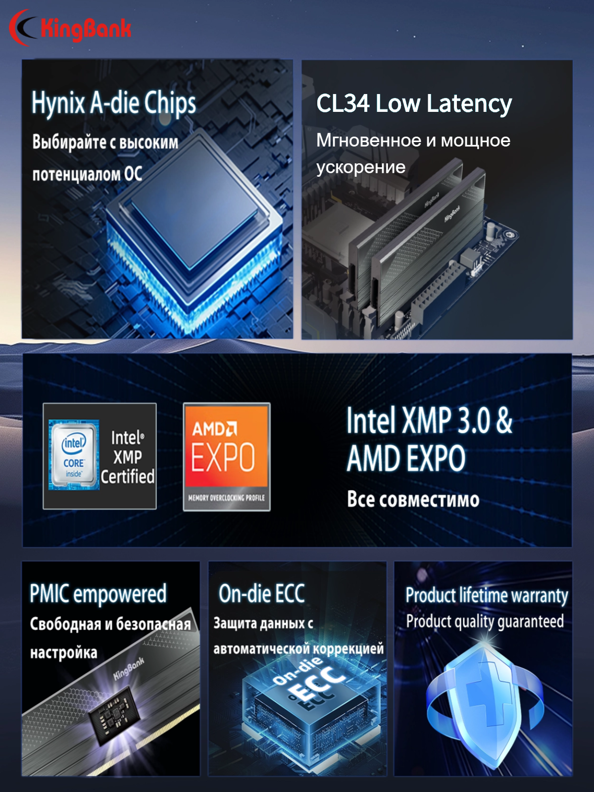 KingBank Оперативная память Dark Star Blade DDR5 UDIMM 7200MHz 2*16ГБ Dark Heatsink(Hynix A-die C34): сравнение цен, характеристики, фото, актуальное наличие и цены.