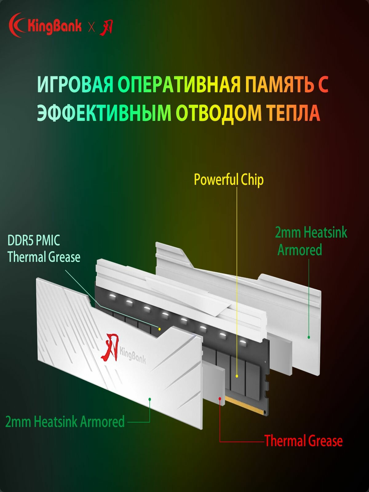 Купить KingBank Оперативная память White Solarblade RGB DDR5 UDIMM 6400MHz 2*32ГБ White Heatsink(Hynix A-die C32) с доставкой по всей России.
