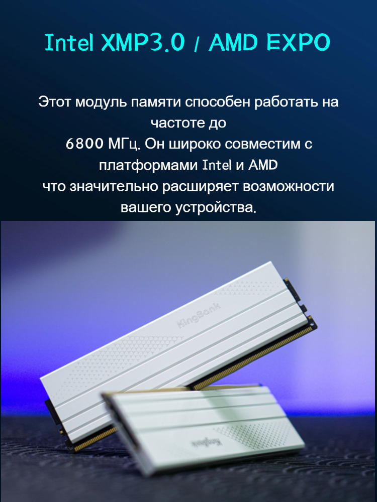 KingBank Оперативная память White Star Blade DDR5 UDIMM 6800MHz 2*16ГБ White Heatsink DRAM(Hynix A-die C32): сравнение цен, характеристики, фото, актуальное наличие и цены.