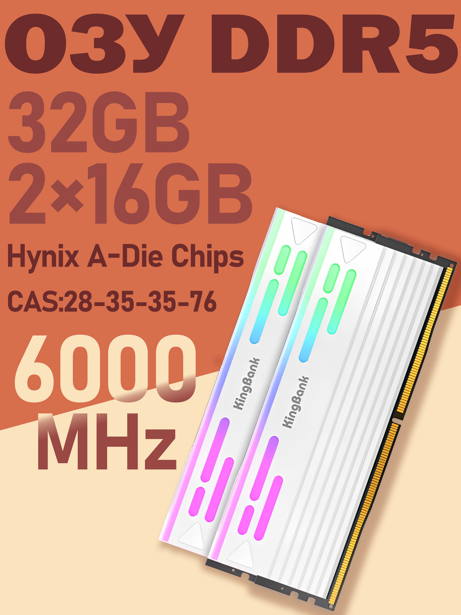Kingbank Оперативная память White Star Blade RGB DDR5 UDIMM 6000MHz 2*16GB White Heatsink (Hynix A-Die C28 ): сравнение цен, характеристики, фото, актуальное наличие и цены.