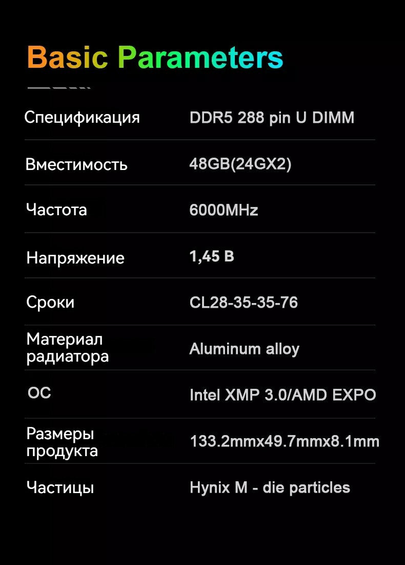 | Особенности | RGB-подсветка, XMP, игровая, радиатор |