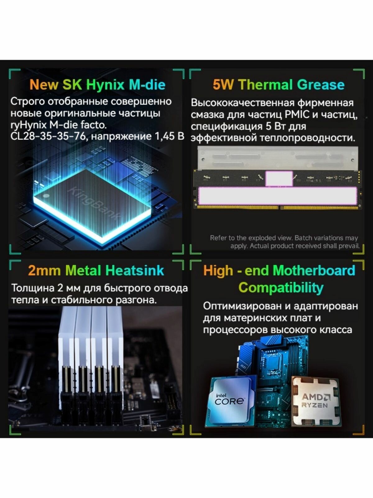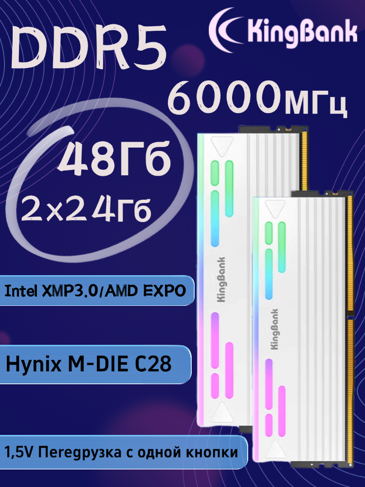KingBank Оперативная память White Star Blade RGB DDR5 UDlMM 6000MHz White Heatsink (Hynix M-Die C28) 2×24 ГБ: сравнение цен, характеристики, фото, актуальное наличие и цены.