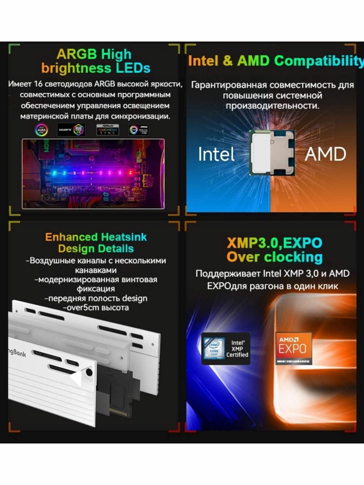 | Особенности | RGB-подсветка, XMP, игровая, радиатор |