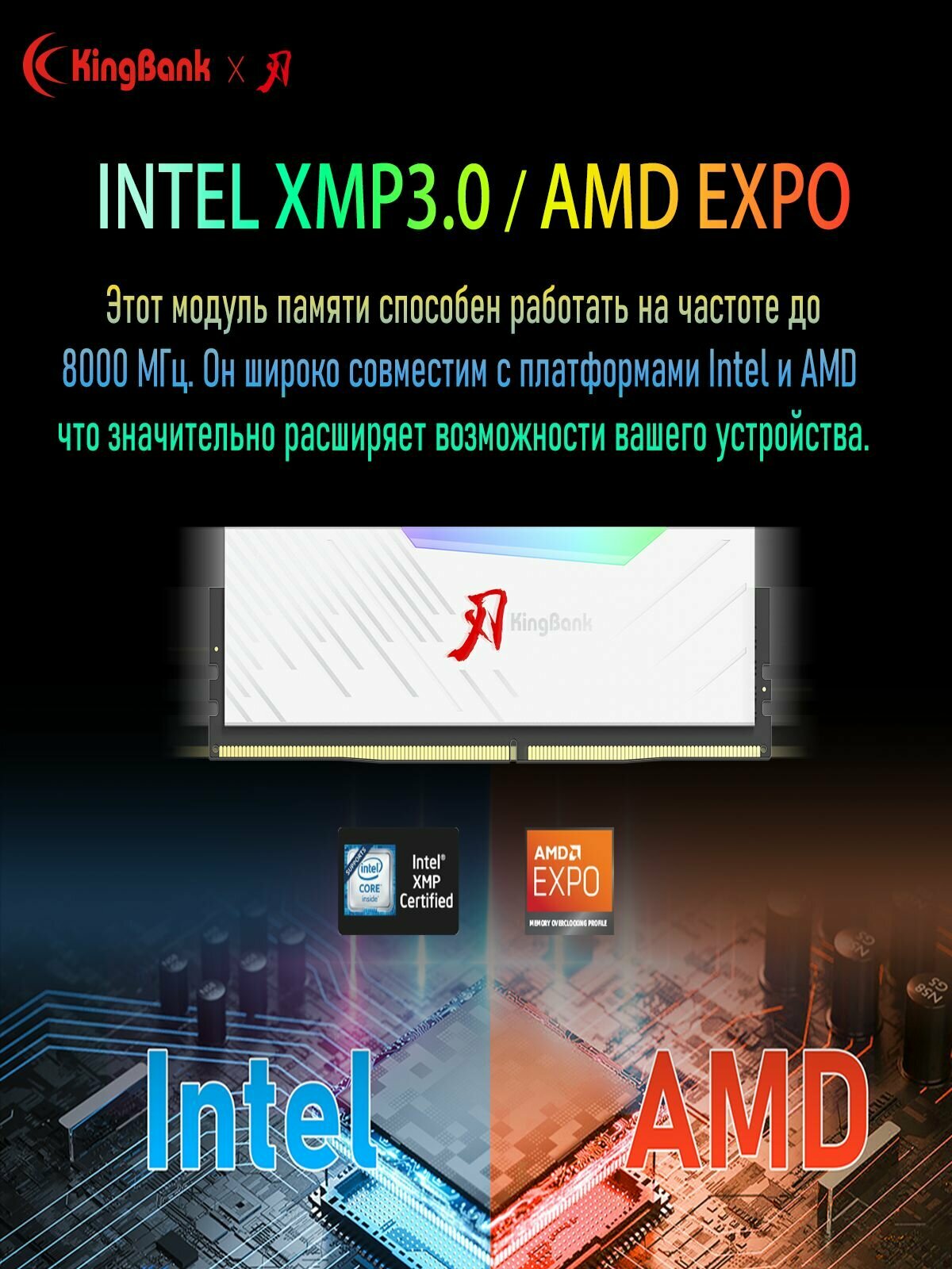 KingBank White Solarblade Модуль памяти DDR5 8000MHz 24GB UDIMM Heatsink White RGB DRAM(Hynix M-die C38)*2: сравнение цен, характеристики, фото, актуальное наличие и цены.