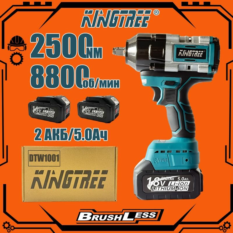 Kingtree 1/2′ Гайковерт аккумуляторный ударный,8800 об/мин для ремонта автомобилей и повседневной работы (2 АКБ 5,0 Ач): сравнение цен, характеристики, фото, актуальное наличие и цены.